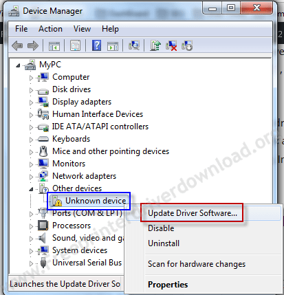 If you won’t see even one port from these named ports, then it means your computer is not detecting your printer properly. Please double-check the printer connection manually and fix it first.Alternatively, you can go to the device manager → and double-click on other devices → then right-click on the unknown device → and choose the “Update driver & software”. Click here to see screenshot.