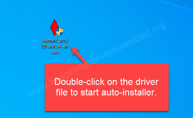 Step 1: Execute the driver file – double-click on the driver file (lexmark_pro200_wcr_64_en.exe) to execute the driver installer.