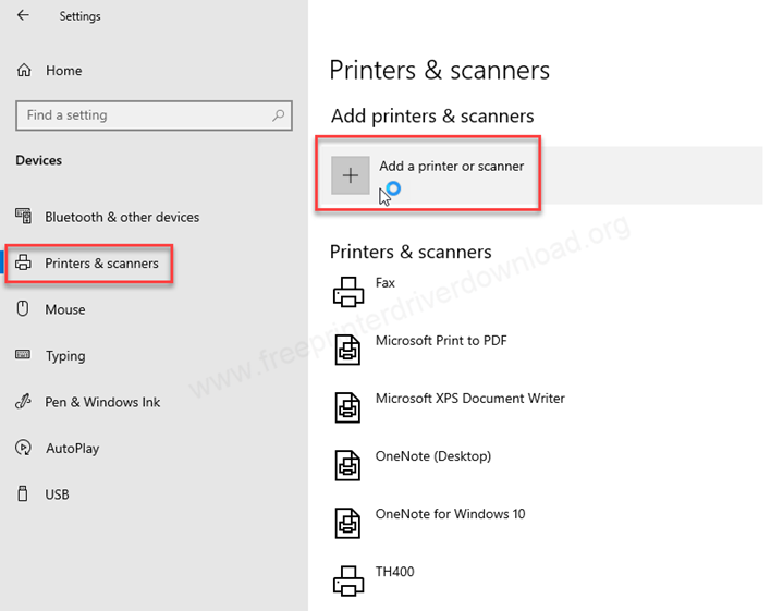 Step 6: You will get a settings page here, and you will have to click on “printers and scanners” from the left side pane and then click on the plus icon “add a printer or scanner” from the right side pane.